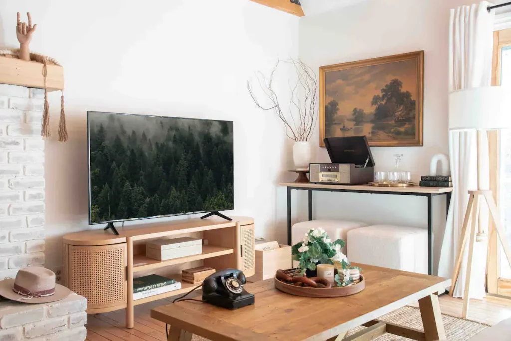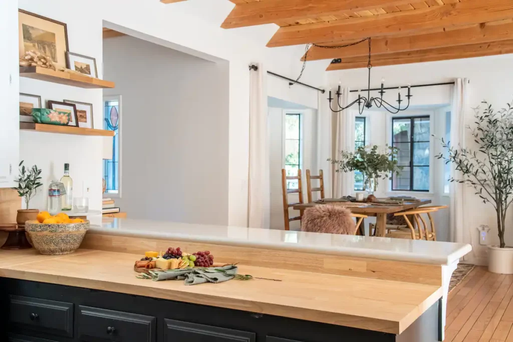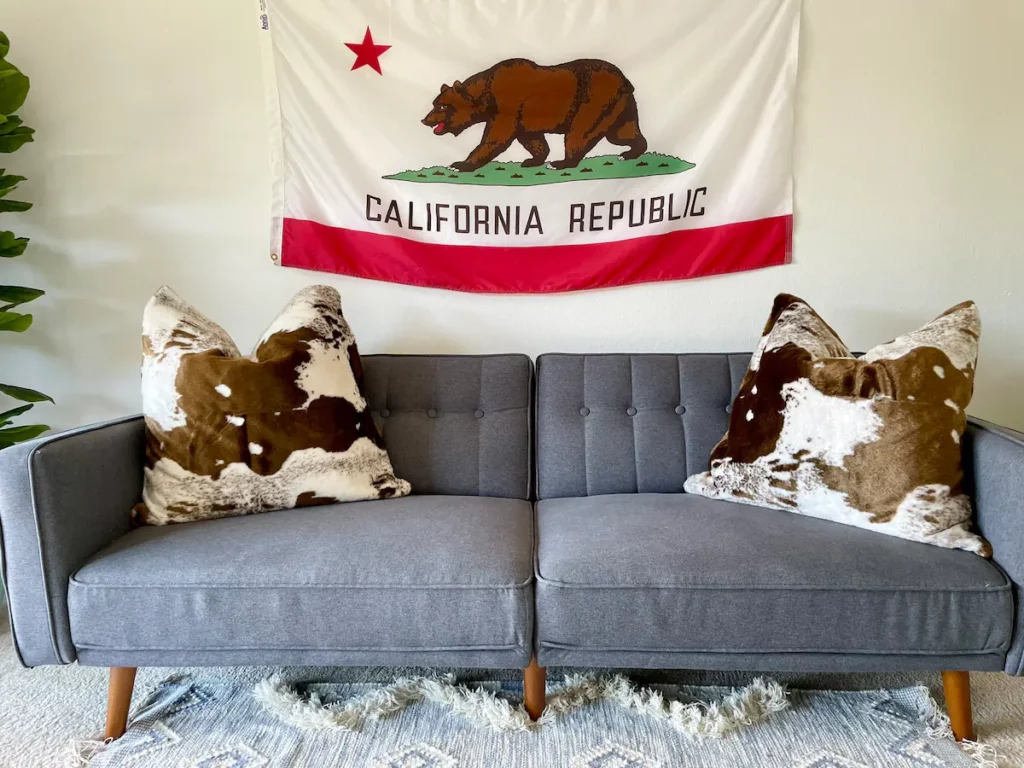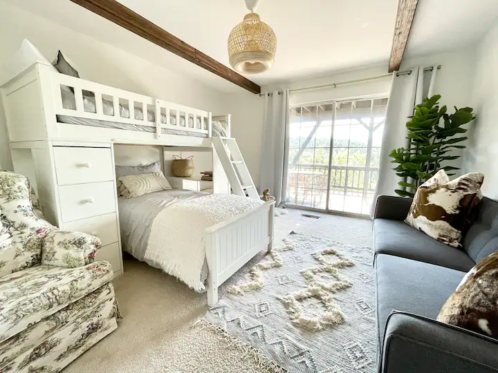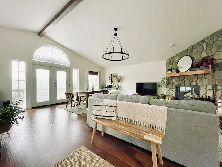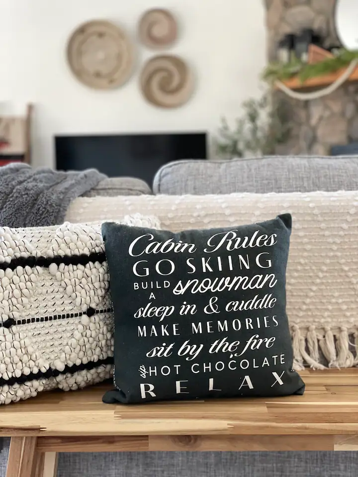 This three-bedroom loft features entertaining amenities that will bring the whole group together. One of our favorite rooms is the movie theater which features a 100-inch screen and has Roku streaming capabilities for the whole family to enjoy. Located near Lake Arrowhead Village and Skypark, guests get to enjoy 10 percent off entry to the latter during their stay.